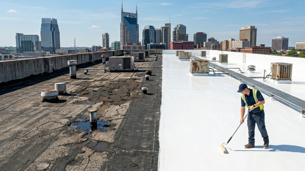 Roofing tar is a cheap, temporary patch for small leaks, but it often cracks in the Nashville sun. On the other hand, elastomeric roof coatings provide a seamless, stretchy shield that lasts for decades.